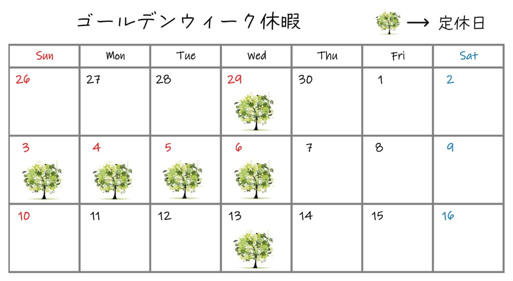 ゴールデンウィーク休暇のお知らせ